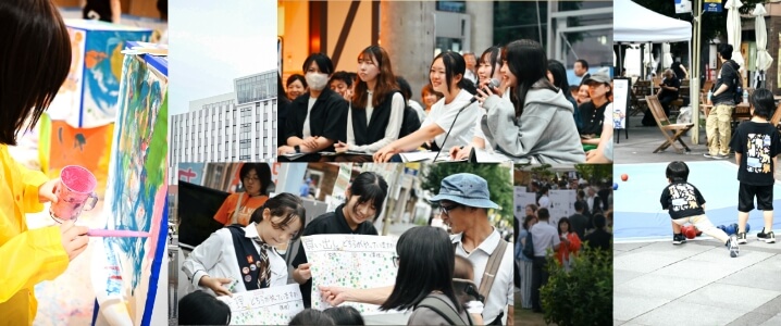 - 約1kmの平和通買物公園を丸ごと会場にした高校生・大学生を中心とした学び合いのイベントです。まちづくり、デザイン、創造都市をテーマに、来場する子どもや社会人と一緒にSDGsやデザイン、ものづくりなどを学び合います。